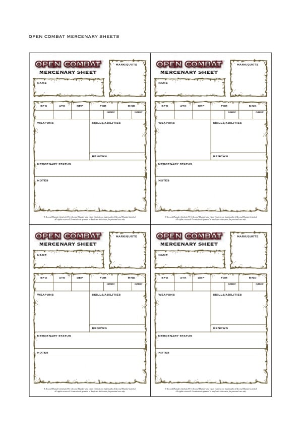 The above link is the Open Combat Mercenary sheets (PDF) for tracking models that have turned to the life of a mercenary in an Open Combat campaign.